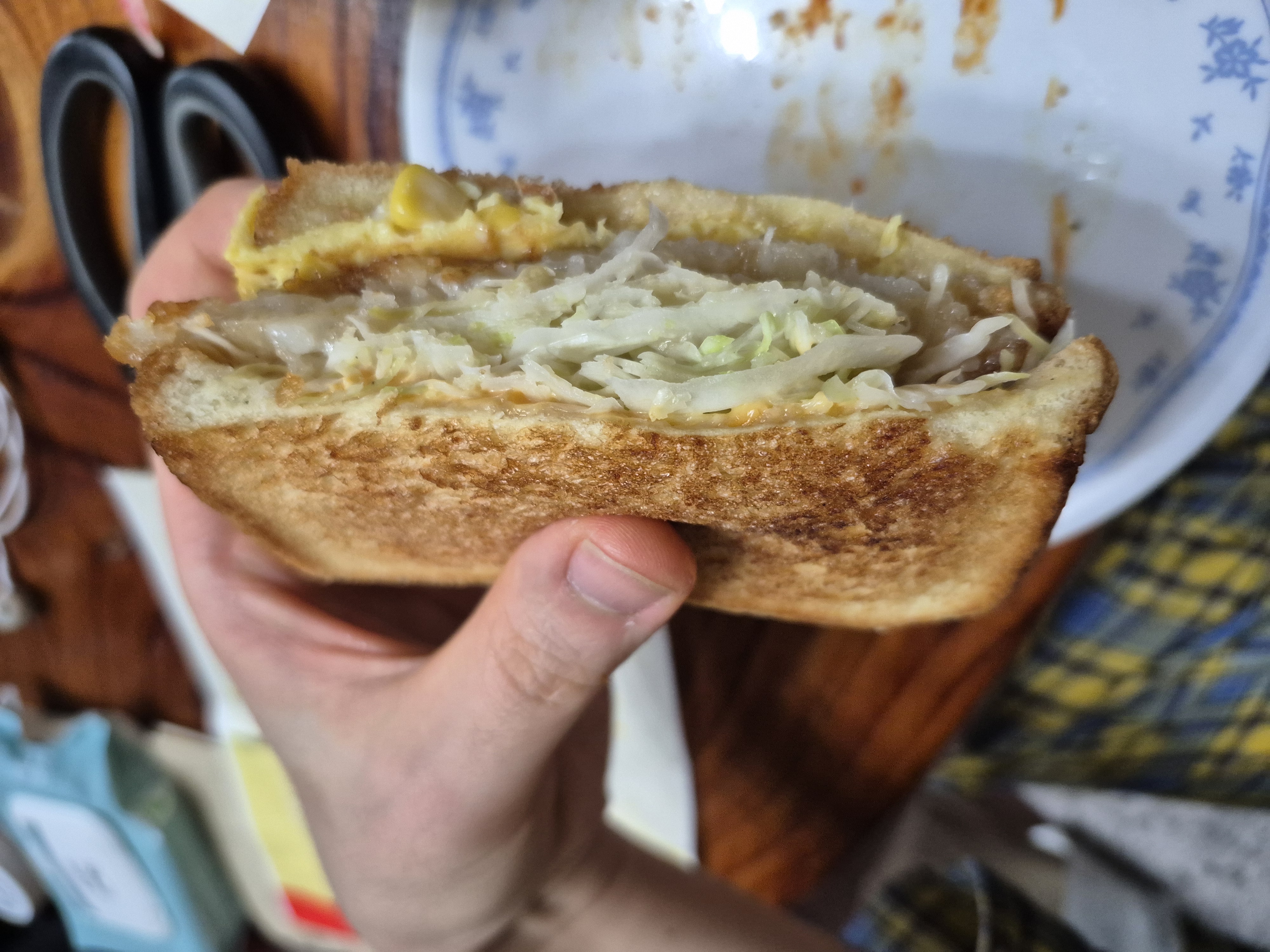 먼저 감자 스페셜 토스트는 한입 베어 무는 순간 바삭한 식감과 함께 부드러운 감자 샐러드의 고소함이 느껴졌습니다.